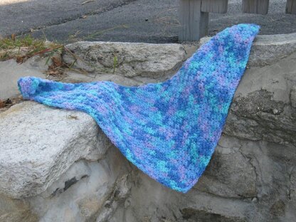 This is a slightly shaped triangle shawl, almost a batwing shape, worked from the top down, in any easy crocheted seed stitch, which results in a lightly textured shawl that sits on your shoulders well.