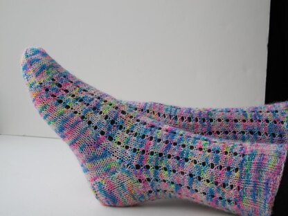 An easy-to-work, easy-to-memorize lace pattern works well with this fantastically outrageous variegated yarn from Vancouver's Rain City Knits.