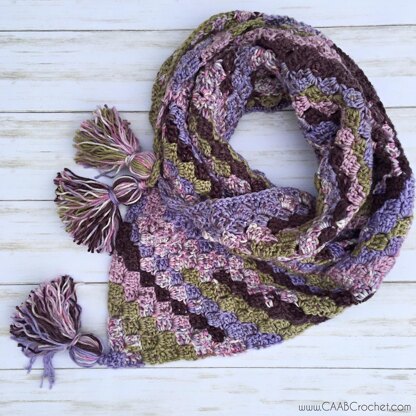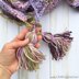 This triangle scarf pattern is constructed so that the two corner tassels can interconnect and keep the ends from slipping off your shoulders! No more tassels slipping and sliding out of place!