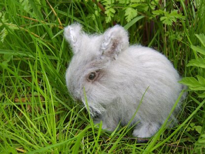 Here is Connie the baby bunny, she stands 4 ½ inches high and is 6 inches long. Made using two strands of Sirdar Blur together in brown and white although can be made using DK or equivalent and brushed up using a teasing brush. 3mm needles are needed and a pair of 10 mm plastic brown toy eyes. What animal lover could resist her!