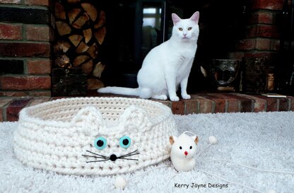 A fun and cosy cat bed for your kitty to enjoy! Works up in just a few hours! With super chunky yarn and a great big hook!