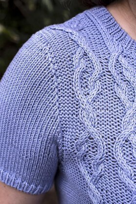 Yarn DK weight yarn (approximate amount): 820 (1000, 1070, 1190, 1340, 1460, 1610) yards/750 (914, 978.5, 1088, 1225, 1335, 1472) m. Berroco Modern Cotton DK (60% Cotton, 40% Rayon; 335 yards/306 m in 100 gr); #6656 Blue – 3 (4, 4, 4, 5, 5, 6) skeins.