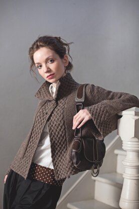 This oh-so-elegant little jacket has a real touch of class. It has a very simple slightly cropped shape and a wide, lattic pattern cabled border around the edges and forming the collar and cuffs, too. The original yarn is Rowan British Sheep Breeds DK but a good alternative is Rowan Alpaca Soft DK.