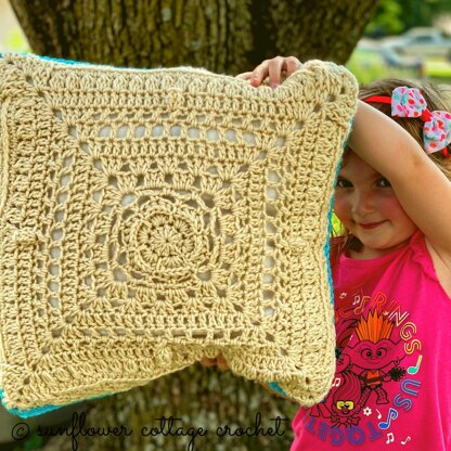 The Cora Pillow is a Granny Square inspired pillow that has floral tones and post stitches to create framing and texture, along with a little pop of popcorn stitches added in. You will enjoy crocheting this pillow, as nearly every round has something different to do!