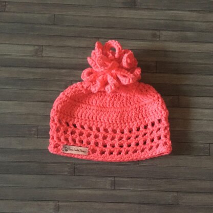 CORAL LATTICE HAT CROCHET PATTERN PDF - A cute baby, toddler and kids hat with crocheted pom-pom that can never unravel! 9 sizes from Prem to 10 Years. Hat is made in the round top down so no sewing of seams. Gender Neutral | Unisex | Baby Boy or Baby Girl.