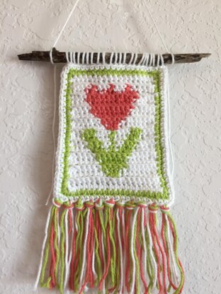 Coral Tulip Intarsia Tapestry Crochet Mini Wall Hanging