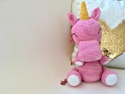 Cornelia is a soft, beautiful pink unicorn, she's easygoing and will be a lovely companion. The pattern is in english and spanish, is for an intermediate crocheter and has complementary images to help you. The size may vary due to the stuffing or yarn,