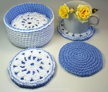 This pattern is written in US/American terms. For UK version, search for: Cornflower Coaster Basket UK TERMS 3506