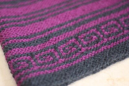 This cowl is deep and cozy, with lovely lines of contrasting color and pert garter ridges to give it both comfort and beauty. The Cornice Cowl works up quickly and gracefully, with a fun Greek key detail worked in mosaic stitches that keep the knitting interesting and draw the eye. Use one color per row, no stranding or carrying yarn necessary!