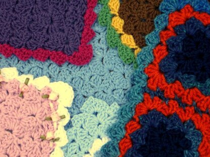 These are not frilly, lacy blankets with gaping holes to let in the chill – nor ugly plain horse blankets fit for animal husbandry or furniture moving. (But you could make a pet blanket!) They are warm yet beautiful, with interesting texture - easy and quick to make. No large holes to snare wee ones’ fingers and toes; sideways shells close the gap. Not so complicated you will give up in frustration, yet interesting enough to keep you going for “one more round!” Make them in solids, or stripes, or edge them with a lovely contrasting color. The edging is no different than the other rounds; the only difference is the color you bring to it, and that last round preserves the pattern’s natural saw tooth edge, for a “show off” finish. Choose your yarn weight – any will do, and choose your color, size and pattern. All will work out beautifully, so let’- Brand