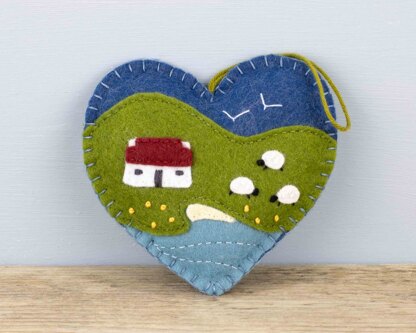 Make an Irish cottage heart felt ornament with this downloadable PDF sewing pattern. The traditional cottage overlooks a tiny bay beneath the hills, with sheep grazing nearby. Create your own reminder of a special trip to Ireland or give as a handmade housewarming gift. The finished heart measures 10.5cm / 4 inches wide and has a cotton loop for hanging. The pattern includes detailed instructions and step by step photos, with actual size templates. All the stitching is done by hand - you don't need a sewing machine. You will need small pieces of felt, small buttons, some filling and stranded cotton embroidery thread, a needle and scissors.