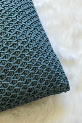 Pattern includes step-by-step instructions to create a smocked-look square pillow in Tunisian crochet. Includes a photo tutorial and links to video tutorials for Tunisian crochet basics and the pattern stitch.
