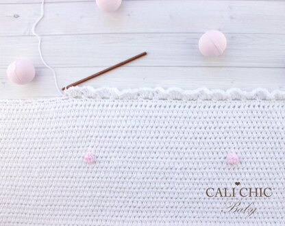 Crochet blanket pattern #160, Cotton Candy, features cute contrast color bobbles and subtle elegant edging. This crochet pattern will make an adorable baby blanket you can give as a cozy, hand made baby shower gift, or keep it within the family as a treasured keepsake.