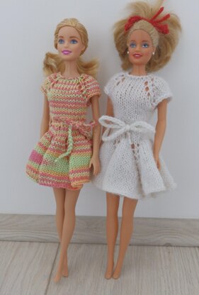 Interesting & fluffy barbie dress that kids adore, worked in a round on DPN’s. The pattern has row by row written instructions so it is suitable for beginners. There is only one size available is to fit a standard barbie doll. There is a given gauge for best fit, but a variation of the gauge with +1 or -1 sts/row can work well too. You can use any yarn with the given weight and gauge. For any questions feel free to mail me. Happy knitting!!!