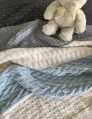 This cotton baby blanket is in the style of a vintage sampler, with a splash of modern colours. The blanket has wide bands of contrasting colour and textured stitch patterns with a garter stitch border. Only knit and purl stitches are used, so the pattern is suitable for a beginner knitter who can cast on, bind off, knit, purl and change colours, while showcasing the variety of effects possible from only two stitches. An easy method to give beautiful, neat edge stitches is included.