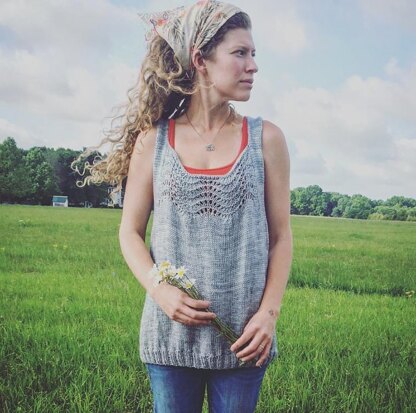 This top is worked from the bottom up to the underarm and then worked flat, front and back. Shoulders and back come together in a 3 needle bind off at the upper back.