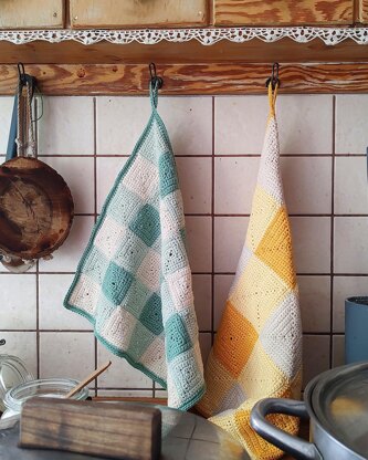 This gingham pattern is created by mixing simple solid squares in three shades. These easy yet stylish tea towels can be made on a few evenings and used every day. If you decide to actually use them, rather than just enjoy their homely, cosy, country looks…