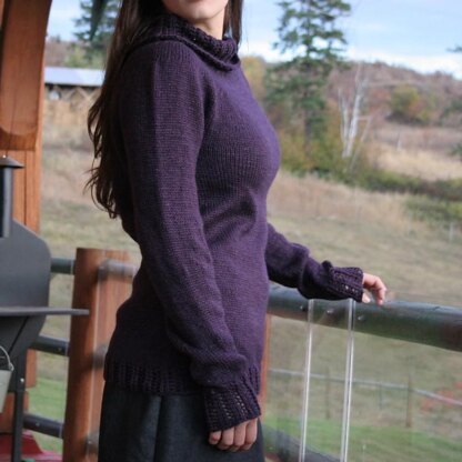 A longer sweater in a heavy weight yarn, with lace ribbing.