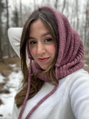 Get warm and cozy this winter with this pull-on style, over-the-head, hand-knit balaclava. Balaclava is knit in a combination of rib and stockinette stitches. Drawstring hood. This is a fun project made with worsted weight yarn. Techniques used include knitting, purling, picking up stitches, seaming and easy shaping.