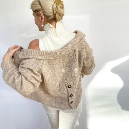Soft yarn, contrasting with cubic shape and cubic pattern. Easy to knit with outstanding details. A true allrounder for your capsule wardrobe. Generous shaping makes this a most comfortable layering piece. The instructions are very detailed and will lead you through to knit a wonderful everyday jacket.