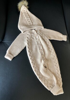 Size: 6-9 month + Yarn needed: 450g (9 skeins) of 100% Merino wool. 50g – 125m. Materials needed: • 3mm circular needles; • 3.5mm cable needle; • 2mm circular needle (for picking up stitches for the hood); • 7 buttons (20mm diameter); • Fur pom pom; • Stitch markers; • A scrap yarn or stitch holder • Tapestry needle. The level of difficulty: Intermediate. You have to know: long tail cast on, knit, purl, yarnovers, cable knitting, knit forward and backward, also knitting in the round, decreases (k2tog and ssk), rib stitch, garter stitch, buttonholes, pick up stitches from the edge.
