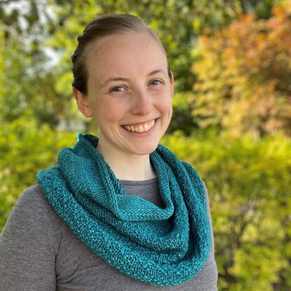 Cozy Winters was inspired by cold, snowy winter weather in Montana: one moment it’s heavily snowing, and the next the sky is clear. The cowl features seven different sections that create a faded texture representing varying snow levels (from whiteout to flurries). This creates a fun, simplistic, and engaging knit. Once the cowl is complete, you can see the snow falling from the sky (at the top of the cowl) and accumulating on the ground (at the bottom of the cowl).