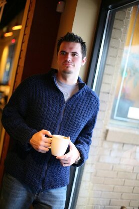 This unisex bulky weight Merino cardigan is as soft as a cotton sweatshirt but warmer. Saddle shoulder shaping and a low-key pattern contribute to a good fit and add flattering details. With the zipper, the collar edges can be folded for a V-neck effect, or zip right up to warm your neck. This is designed in multiple sizes so it can be knit for both men and women.