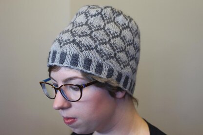 Knit from the bottom up in the round with corrugated ribbing for the hem, this hat has a simple eight stitch repeat to form the pattern. The pattern will work best in solid and semi solid yarns with some contrast. The fit is loose, with minimal ease to help prevent “hat hair”.