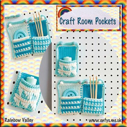 Handy craft pockets that can be hung on a studio peg board, rail or notice board. Made using just one colour plait of Caron x Pantone and a 4mm & 3.5mm hook. Each pocket measures approx. 9cm X 14cm. When two pockets are joined approx. 17cm X 14cm Experiment with different widths, heights, colour combinations & upside down of the pocket fronts to create different looks and effects, including using the wrong side of the work. Have fun with it.