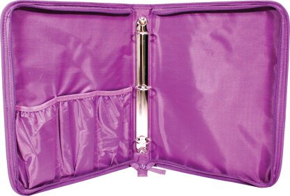 Safely store dies, stamps and craft supplies in the three-ring binder. It works with Crafter's Companion Magnetic Die and Stamp Storage Panels (CC-MAGSTOR-LG2). The binder is purple with a convenient handle and secure wrap-around zipper. The inside includes a pocket with three sections for tools or other craft items. The three rings open easily by pulling them apart to add the storage panels and additional storage. The binder measures 11.5 x 13 x 1.75 inches with handle. A 3 x 2 inch luggage tag with clear window hangs from the handle with removable ball chain. Imported.