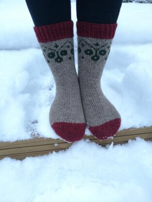 Cranberry socks where inspired by the first frosty nights. Did you know that these bitter sweet berries are at their best just before the first snow lands. What a delight.