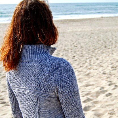 The comfort of a sweater with the look of a tailored jacket. Tons of texture and clean lines designed to look great on many body types. Flattering features include an angled hemline for longer length in the back and tapering at the waist. The bands at the yoke are repeated at the hemline and sleeve cuffs.