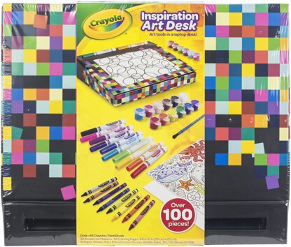 The inspiration art desk by Crayola provides a huge assortment of art supplies in a portable storage case that also functions as an art desk! From markers and crayons to paints and a brush, you get a variety of ways to draw, doodle and create colorful masterpieces. This 14x11.25 inch package contains 30 broad line markers, 48 crayons, 18 paint pots, 1 paintbrush, 20 line art sheets, 20 blank sheets and art desk with storage. Recommended ages four years and up. Conforms to ASTM D4236. Imported.