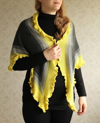In the model shawl color A is dark gray, color B is middle grey and color C is yellow.