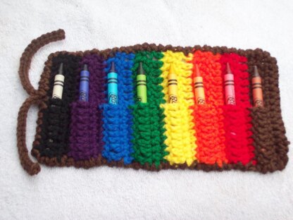 This pattern uses scrap yarn to create a colorful roll up crayon keeper for your little angels!