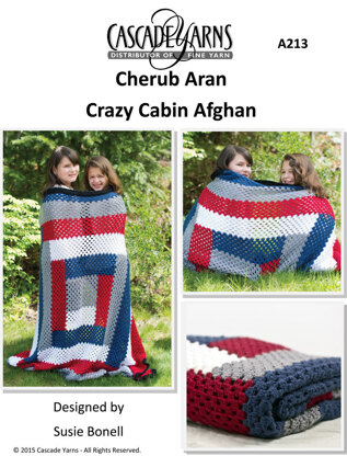 Crazy Cabin Blanket in Cascade Cherub Aran - A213 is a free Intermediate Crochet pattern by Cascade Yarns, available as a Downloadable PDF and includes instructions in English. Super fun to make, this pattern could be your next masterpiece!