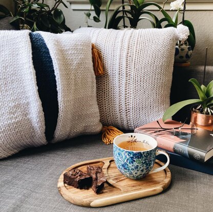 The Cream Pillows are two indoor/outdoor pillows featuring an original design on the front. The design is perfect for adding beauty and texture to any decor, and super bulky yarn makes this project a satisfying and fast knit. And see if you can stop at just one!