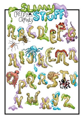 Designed by: Linda Gillum. Spiders and worms and snakes, oh my! Make playtime the creepy-crawliest with this alphabet squirming with slimy creatures! Perfect for little boys room and name sign. Featuring darling details in each delightful letter, this fun cross stitch makes the perfect gift for your little entomologist!\n