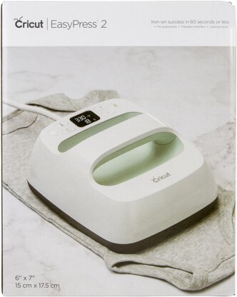 Iron-on projects are a breeze with the Cricut EasyPress 2! The 6” x 7” size is perfect for hot pressing small projects like baby clothes, accessories, hats and more. With heat settings adjustable up to 400 degrees, you get professional iron-on results in 60 seconds or less. The EasyPress 2 is lightweight, portable, easy to use and features a ceramic-coated surface for easy cleaning. Also includes an insulated safety base with an auto-shutoff feature. Recommended for adult use only\n\nPackage Includes: \nOne 6” x 7” Cricut EasyPress 2 (Color - Mint)\n\nOne safety base\n\nOne welcome book\n\nMaterials for a practice project