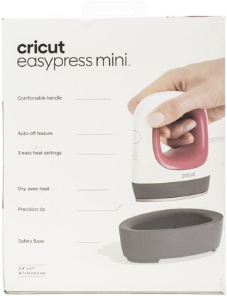 The compact size is ideal for unusually small or unique heat transfer projects. Customize unusual projects like hats, shoes or stuffed animals. This 5.75x7.5x3.5 inch package contains one EasyPress Mini with three heat settings, insulated safety base and auto-shut off. Imported.