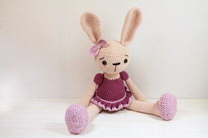 Size: The rabbit high from the feet to the top of the ears is about 45cm tall (17inch). This pattern is easy to follow but requires basic crochet knowledge. Skills required: • Working in a spiral (in the round) • chain stitch • double crochet stitch • half double crochet stitch • back loop only • Increasing • Decreasing • switching color • fasten off Supplies: • 3,0 mm crochet hook • 1 pair black 12 mm safety eyes toy • Black embroidery thread • Soft stuffing • Yarn needle The pattern is written in English. This file includes detailed instructions of step by step with pictures. The pattern is a PDF file