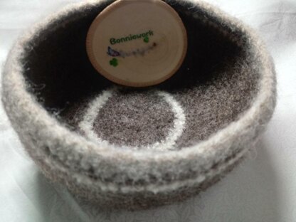 Crochet it, felt it, shape it, then let it dry. You will have a pretty felted bowl.