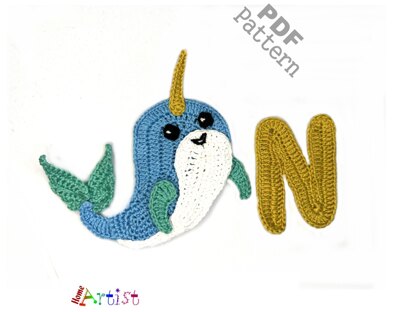 Crochet Animal Alphabet N Narwhal pattern
