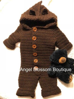 This is a baby crochet bear snowsuit made to fit 0-3/ 6-9 mon