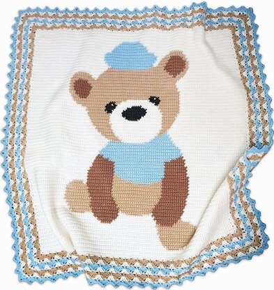 This pattern is available for instant download as a PDF file. It includes basic instructions on how to make a blanket body and round-by-round instructions for its border. They are written in both British and American crochet terms. However, to add a design you will need to follow a colour chart that represents an entire blanket body piece.