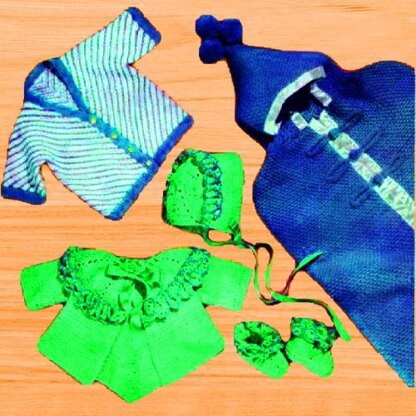 - CHADWICK'S RED HEART BABY WOOL, 3 Ply, Art. E.277: 2 skeins (1 oz. “Tangle-Proof” Pull Out Skeins) each of No. 1 White and No. 679 Nile Green. Clark's