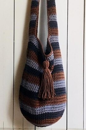 I have to say it -- I think this bag is beautiful. I had a lot of fun designing it and I just love the combination of colors. In addition to being very pretty, the bag is also very roomy. The tassel gives the bag a lovely slouchy look and can hang down on one side, or flip over the top to keep the two sides together.