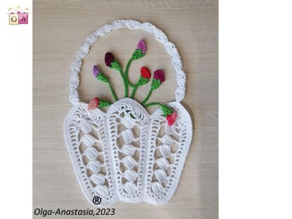 Crochet basket with a bouquet of flowers Modern crochet pattern . A detailed pattern for all crochet motifs - a graphic diagram, a photo and a verbal description of each crochet row. PDF file for 26 pages Design work by Starostina Olga