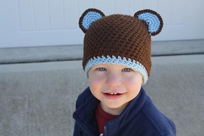 The sizes included in the pattern are newborn, 0-3 months, 3-6 months, 6-9 months, 9-12 months, 12-24 months, Small Child (2-4 years), Large Child (4years-tween), Small Adult (women) and Large Adult (male) Pictures are of hat size 12-24 months.