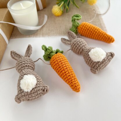 Crochet bunny & carrot pattern Easter crochet garland Amigurumi pattern spring garland Crochet keyring charm